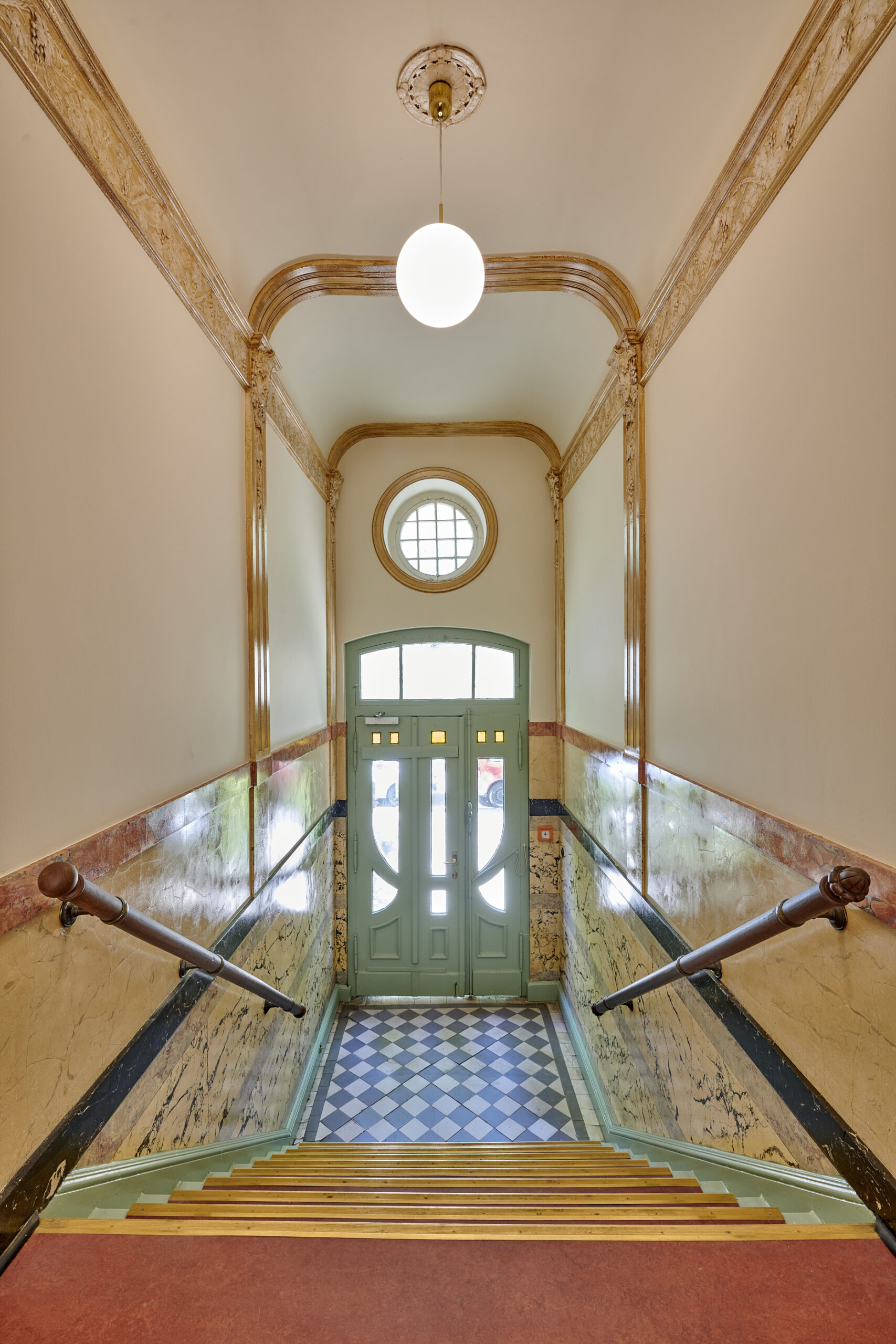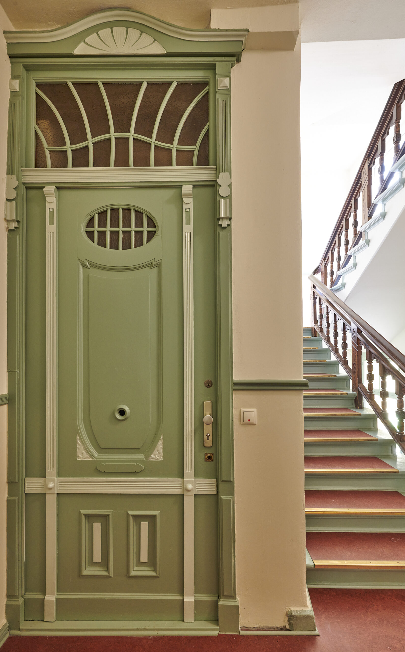 Restaurierung eines Treppenhauses Gebautes Gabriele Riesner Architektin Gabriele Riesner Architektin Restaurierung eines Treppenhauses mit Eva Schlu, Köln Ort: Berlin-SteglitzBauherr: Privat Fertigstellung: 2021Leistungsphasen: 1-8 Fotos: André Baschlakow Bestand